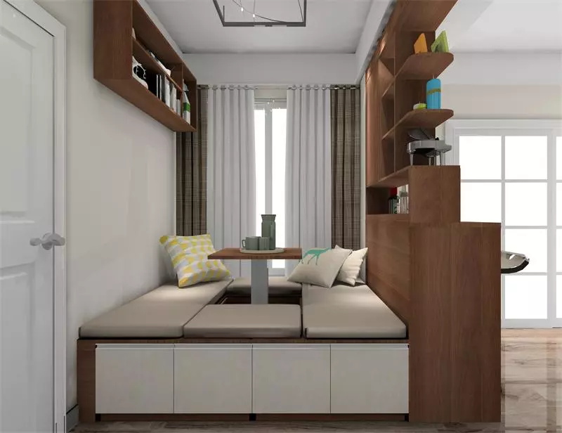 書桌旁邊還可以沿著窗戶做一排榻榻米,兼顧休憩和收納作用。