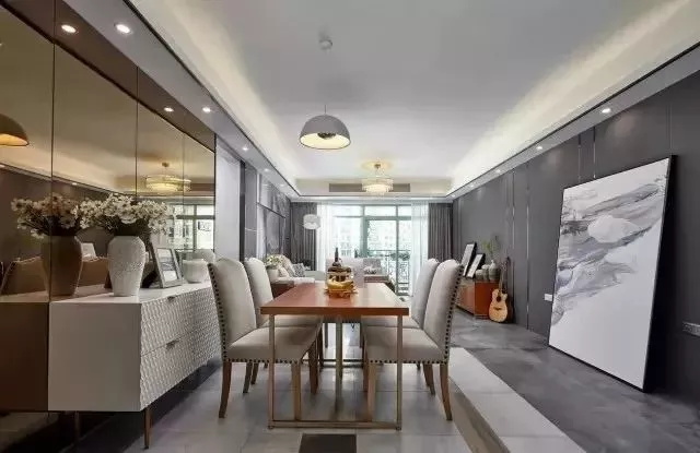 餐廳燈光主要是為了突出美食,可以選用筒燈或者顏值高的吊燈,增加空間的個性,還能突出食物的美味。為了避免出現餐桌過亮其他區域過暗的情況,可以增加均勻分布的嵌燈,或者加一盞落地燈,增加漫反射的照明,形成一個光線柔和的空間 ▼