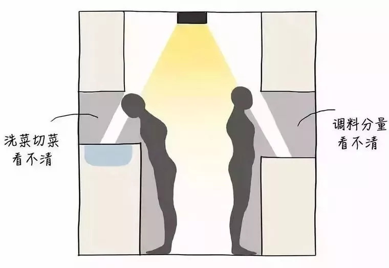 當你切菜煮飯的時候就會發現,你剛好擋住了吸頂燈下的光,面對的地方都是一片陰影。是不是仿佛又看到了自己在廚房摸黑切菜的樣子?