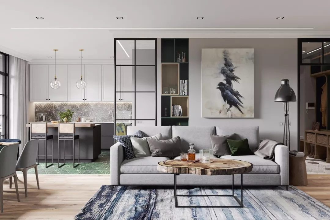 令人頭疼的油煙問題,可以選擇超強吸力的油煙機,再利用玻璃移門、吧臺、島臺或家具隔斷進行遮擋,大大減少開放式廚房帶來的煩惱。