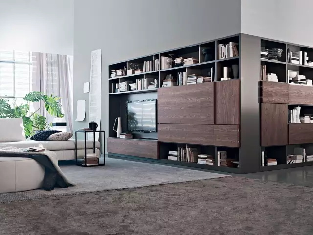 一般來說,整面墻的書柜可以與電視合二為一,也可以安置于沙發背后的墻面。它不僅具有延伸視線的功能,還能起到不錯的收納與裝飾效果。