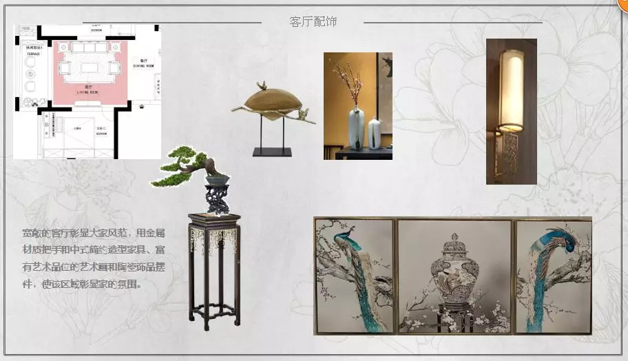 本案為新中式風格,寬敞的客廳彰顯大家風范,用金屬材質把手和中式簡約造型家具、富有藝術品位的藝術畫和陶瓷飾品擺件點綴空間,極具古典氣息,營造中式特有的韻味和文化氣息。