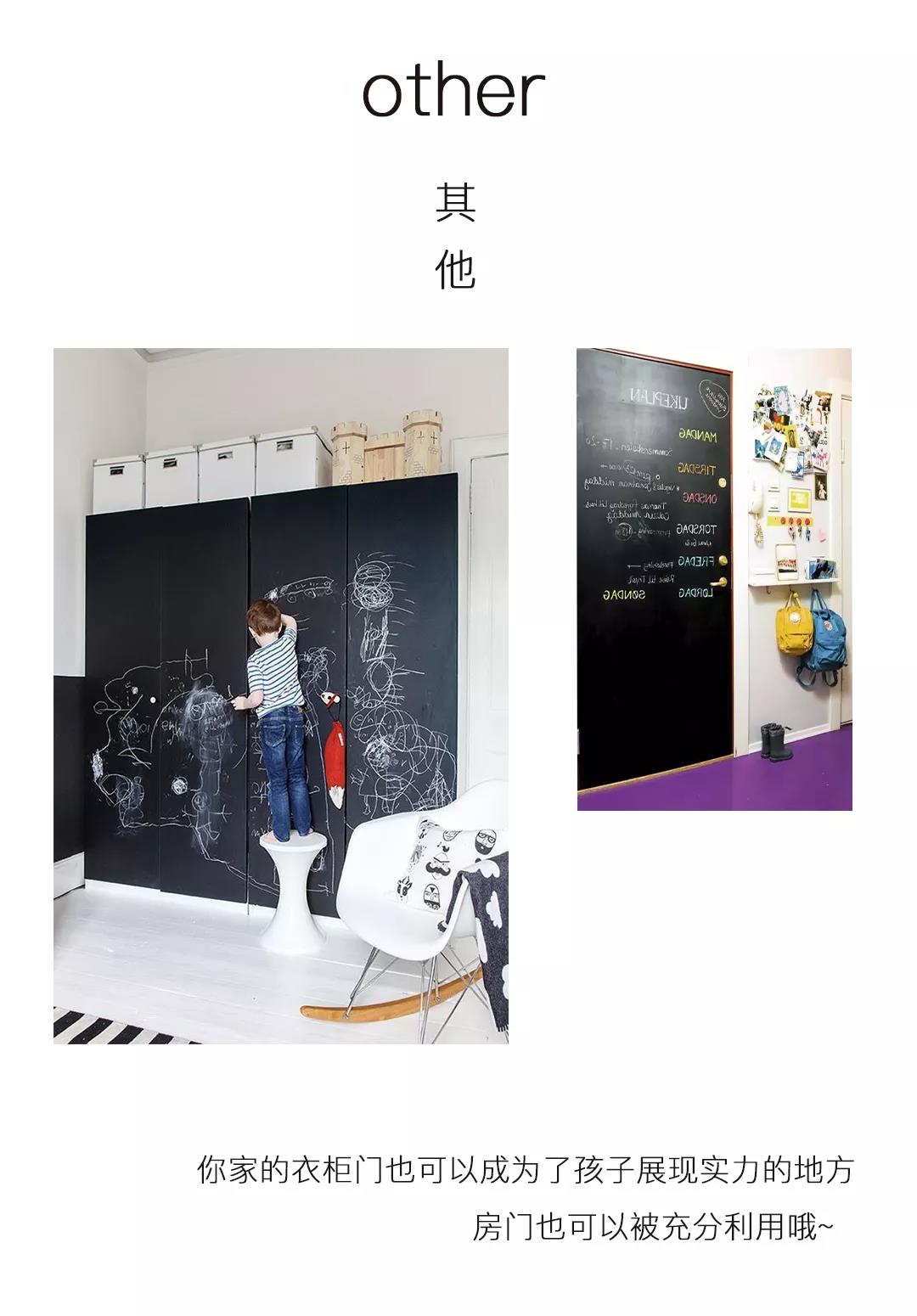 它可以代替墻紙,你可以在上面DIY任意圖案。它很酷很實用,你可以用作備忘錄、記菜譜、靈感冊。它也是有娃家庭的必備品,讓孩子隨意涂畫,再也不必擔心墻壁被劃花。