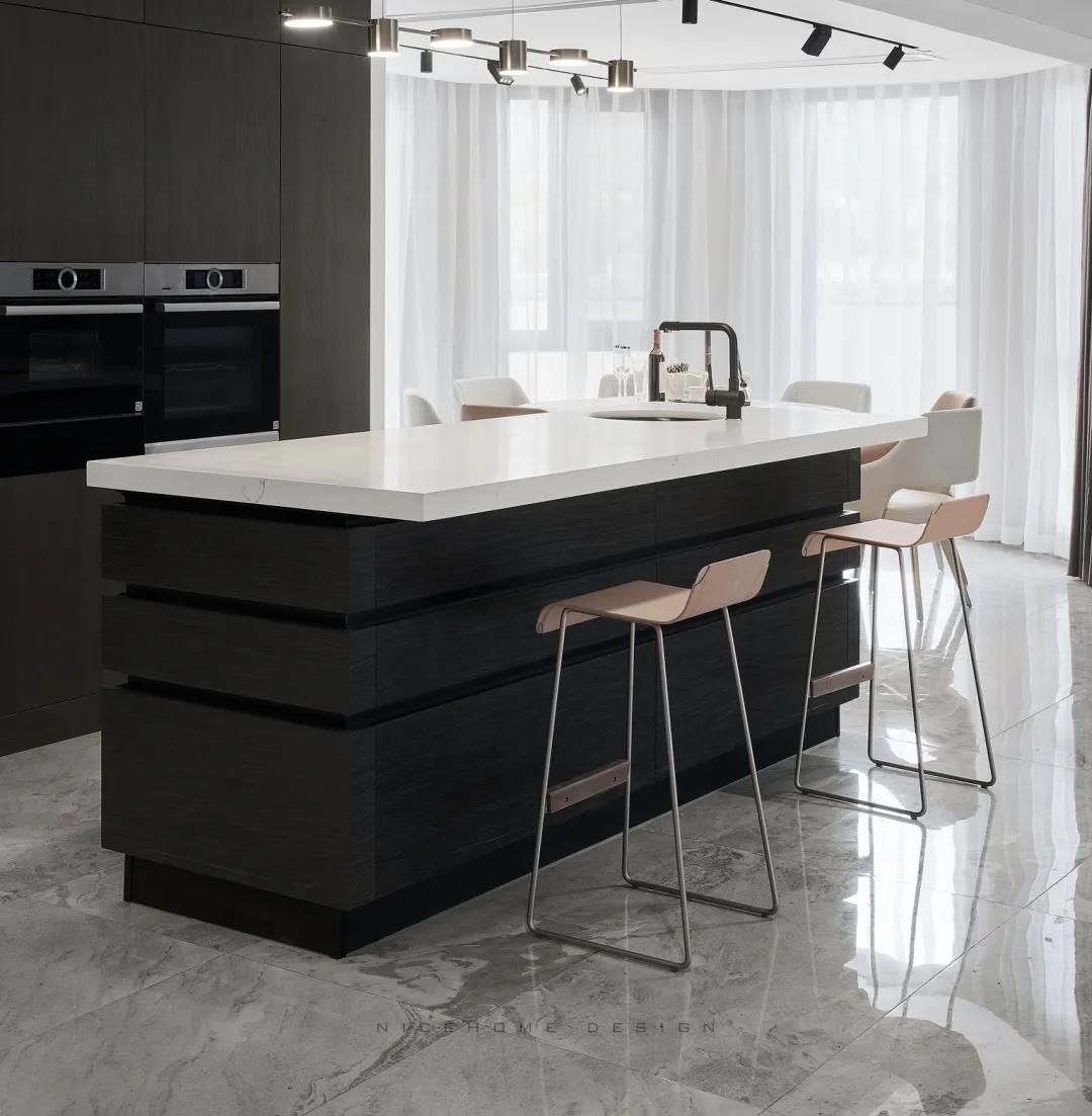 結(jié)合白色巖板地臺(tái)和原木色定制柜體