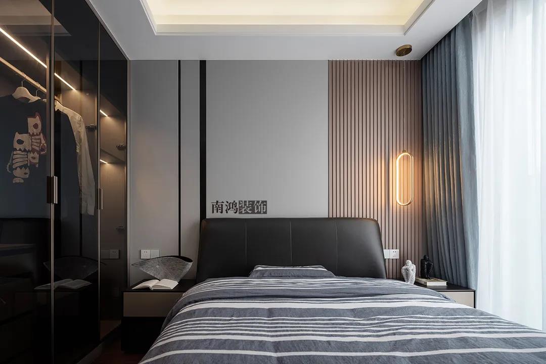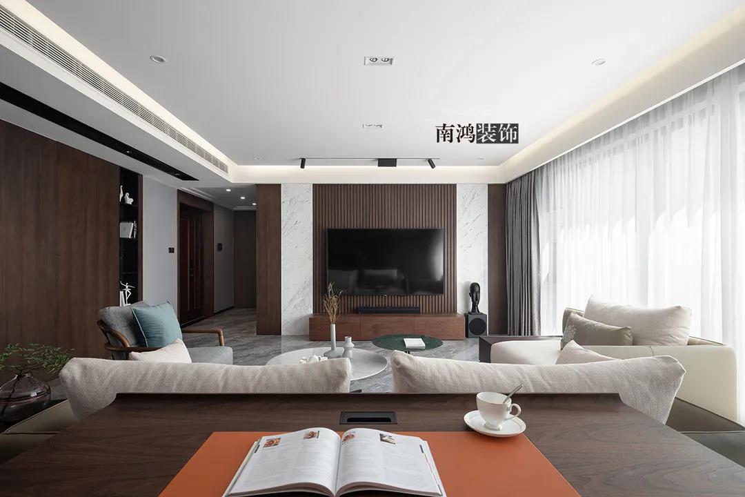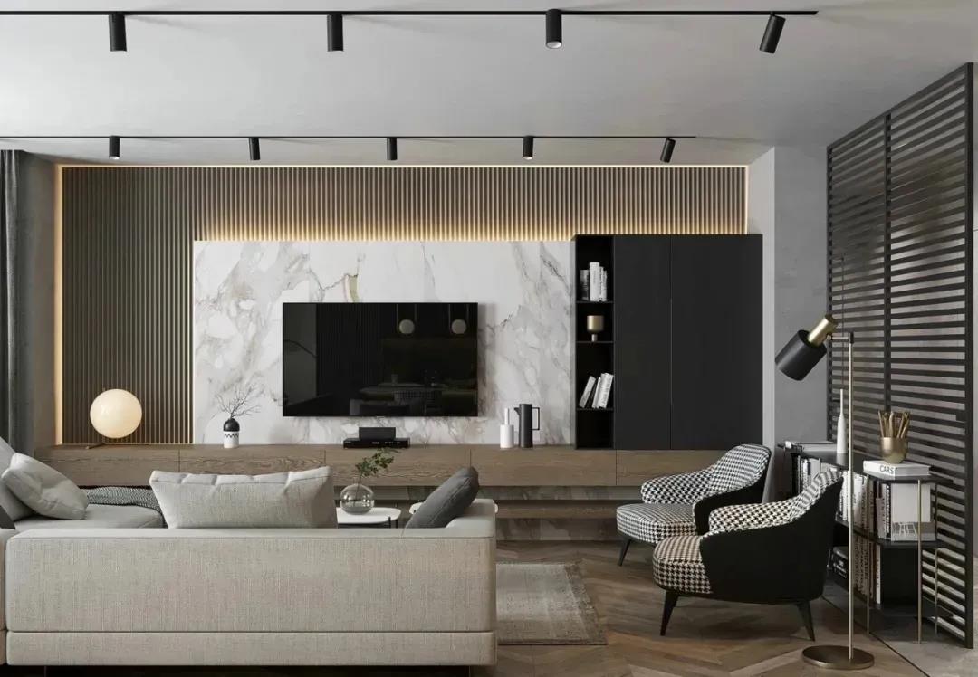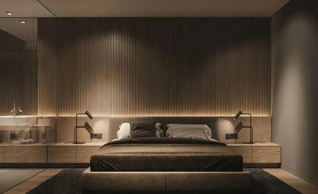 除隔斷之外,木格柵應用于各空間的背景墻也是常見的做法,比如客廳、臥室等。