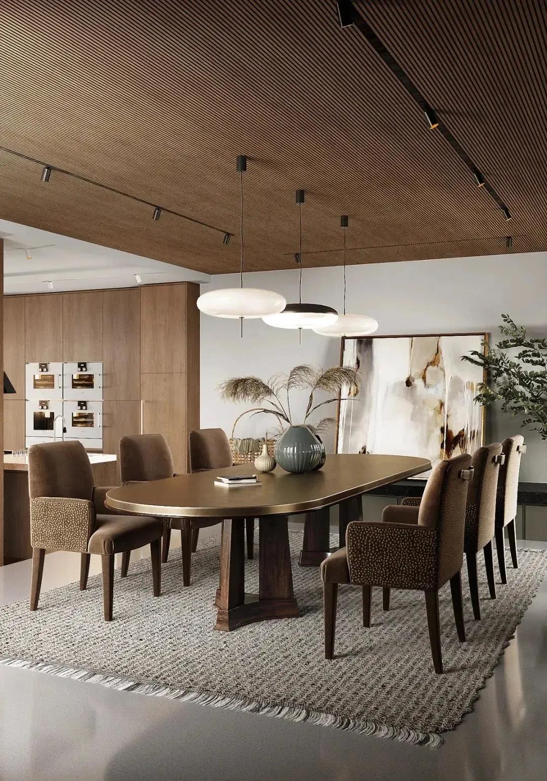 如果想進一步提升裝飾效果,可將線性光源穿插在木格柵之中,讓空間能在光影中盡顯朦朧雅韻~