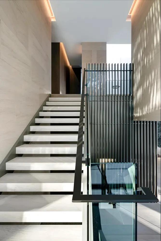 木格柵在具體應用時可搭配其他元素,比如金屬或大理石這種偏冷硬的材質,當它們邂逅木格柵時,便會變得“平易近人”一些了。