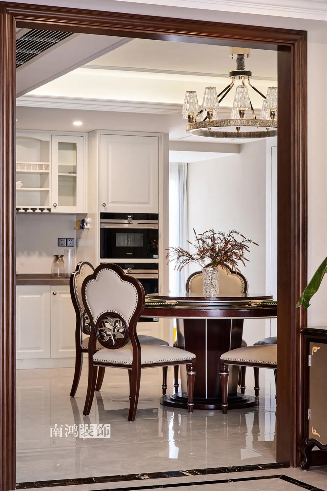 全屋雜糅了新古典、美式、中式、現代等風格的軟裝陳設,不同的空間有著不同的空間表情,想必每日住著看著都能感受到不一樣的趣味~ 01. 玄關 ENTRANCE 正對入戶口的玄關走道,盡頭處用矮柜輔以金框風景畫和擺件打造端景,實現高雅藝術表達。 02. 客廳 LIVING ROOM 轉入客廳,挑高的空間氣勢十足。軟裝材質、色彩選擇,傳達出濃厚的歷史文化底蘊,契合業主對高檔格調的追求,同時在硬裝上簡化線條,空間更加明晰可觀。 為了滿足大家庭的活動需求,設計師將原有的客餐格局重新規劃,一層客廳在最大范圍內打開,讓光線與氣韻流通,形成一個視野開闊、采光良好的會客休閑領域。從這里可以看到二樓孩子的學習讀書角。 5.4米的沙發背景墻自然成為整個客廳的視覺焦點,設計師選擇了護墻板的形式,木板分割出的造型有助于進一步拉伸層高,大氣高級的效果貫穿一二層空間。 客廳是家庭活動的重心,在裝飾上力求凸顯典雅莊重的特點。華貴的深色沙發靠墻安放,金屬鏤空隔斷在壁燈的照耀下泛起光澤,光滑的茶幾表面折射著溫度,優雅利落的奢華感,從種種細節間流露出來。 03. 餐廳 DINING ROOM 家里人口較多,基于實際需求考慮,使用圓桌是最合理的選擇。開放式操作臺兼做餐邊柜,中西結合的餐飲習慣也在這里得到了充分的體現。 04. 廚房 KITCHEN 廚房選擇了傳統的封閉式U型格局。U型廚房可以利用三面墻壁做出充足的儲物空間,動線也很流暢,而且這種封閉式的設計,最大程度地避免了外部用餐空間被油煙侵擾的問題。 05. 樓梯 STAIRS 木白配色的樓梯低調地串聯起上下層空間,原木質感給予家以寧靜,墻上一幅山水畫占據住了視覺焦點。 06. 臥室 BEDROOM 主臥面積寬敞,功能全面,衛生間衣帽間休閑區一應俱全。 睡眠區風格莊重,儀式感足,皮革硬包背景搭配華貴家具,細節處倍感精致。 主臥的休閑區,天氣好的時候,柔和的光線透過窗子灑進陽臺,優雅的主人坐在舒適的躺椅上靜靜品茶、看書,理想中的歲月靜好似乎照進了現實。 女兒房,顏色飽和度都很低,一種純粹的設計和生活方式就這樣被喚醒。 二樓兒童房。兒童房是孩子對色彩、形狀產生最初認知的地方,所以在設計上不僅要注重實用性,更要注重趣味性。童趣主題墻面、云朵狀的床頭、可愛的小掛衣桿,能讓小朋友在這里充分探索未知、創造快樂! 07. 露臺 TERRACE 露臺存在的意義,大概就是:清晨的時候泡上一杯茶,等待陽光喚醒頭腦;傍晚的時候,可以在這里享受晚風、星月,體驗都市生活中難得的一刻放松。再多養幾盆花花草草,讓美好盡情綻放~ 08. 衛生間 BATHROOM 具有現代感的主衛空間使用灰黑色主調,懸空式的長臺盆柜輕盈時尚,燈光布置層次分明,功能性與美感得到了統一。 客衛,玻璃淋浴間實現簡單的干濕分離,金色的水龍頭與臺盆柜把手、落腳更顯精致。 平面戶型圖 -- ·項目信息· 項目名稱:金都華庭 建筑類型:復式 設計風格:混搭 項目地點:中國·杭州 項目面積:230㎡ 項目服務:設計·施工·硬裝·軟裝 全案設計 設計單位:浙江南鴻裝飾 施工單位:浙江南鴻裝飾