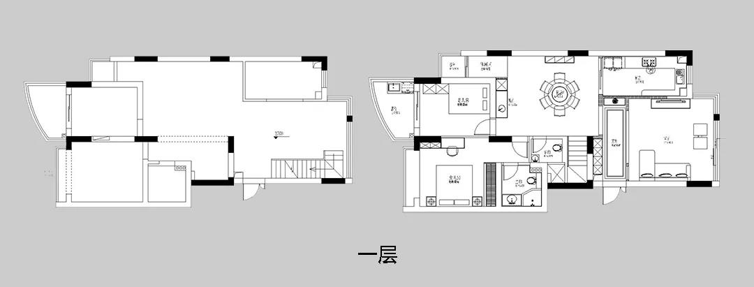 本案戶型面積較大,上下兩層加個露臺,地處市中心,常住人口為五人,家有三個孩子。業主本人偏好古典式的優雅莊重,但也喜歡現代風的簡約時尚,深思熟慮后最終確定了混搭的一個設計主題,中西結合,凸顯個性。