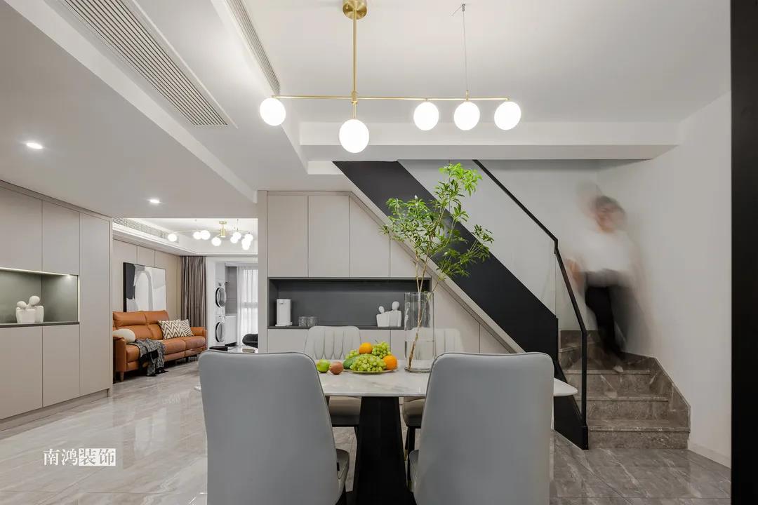 本案是一套現代輕奢風格的復式作品,業主夫妻二人,暫無小孩子,房間上除主臥之外,保留了兩個次臥做父母房和兒童房,一樓寬敞通透的開放式公區域設計成為本案一大亮點。