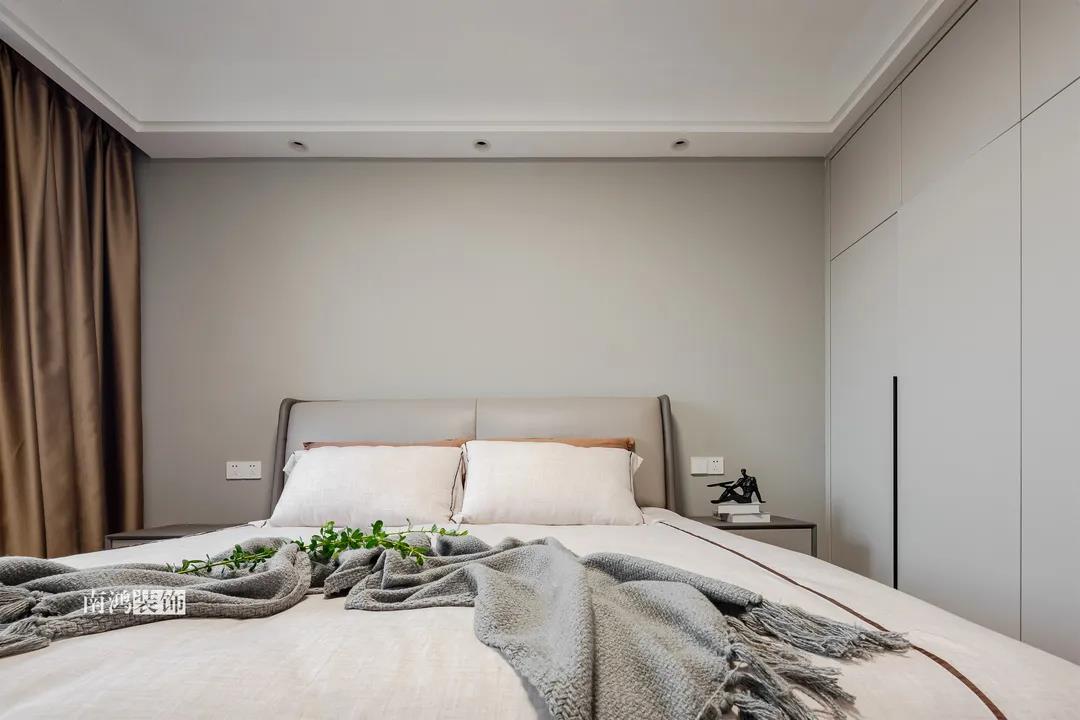 長輩房藏在客廳隱形門背后,不增添過多修飾的空間更加簡約耐看,偶爾來小住的父母也有了私密的休憩之地。